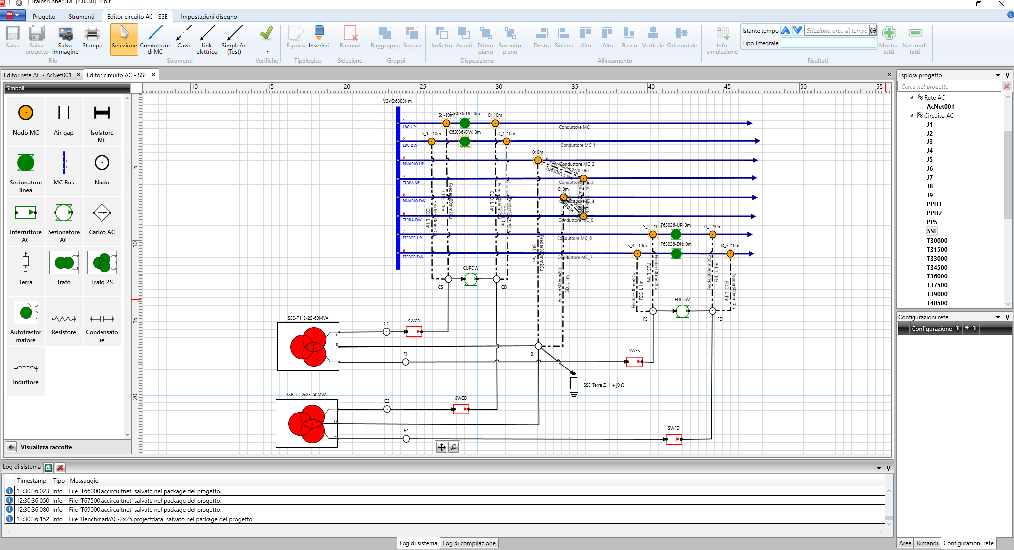 - Electric circuit and model of substations (both AC and DC systems), with feeders