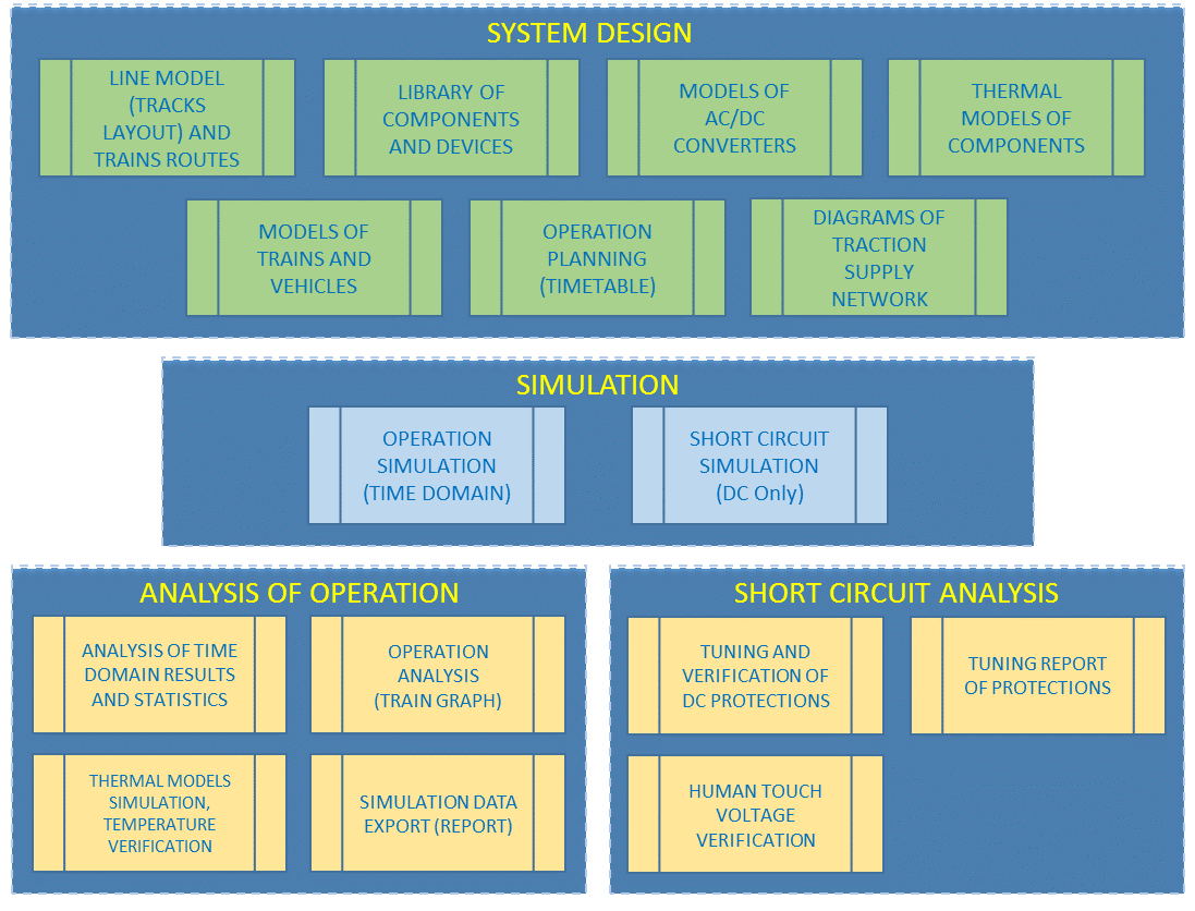 - Library of electric components (overhead contact line, rails, cables and equipment)