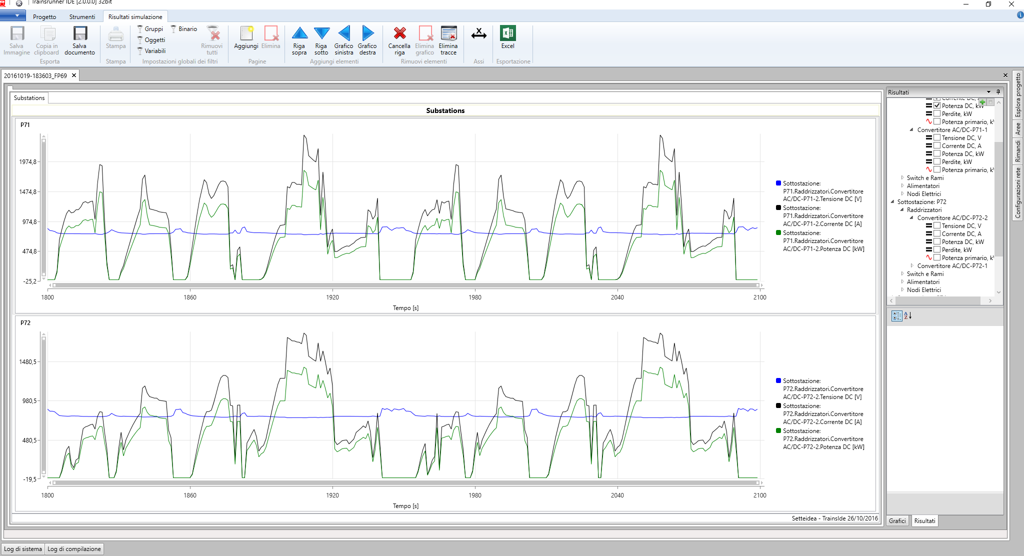 TrainsRunner Studio integrates powerful results analysis tools for performance evaluation (also based on time and signaling system), TE power system operation, component thermal behavior and short circuit safety . An optional package allows you to design the calibration of short-circuit protection (breakers thresholds).